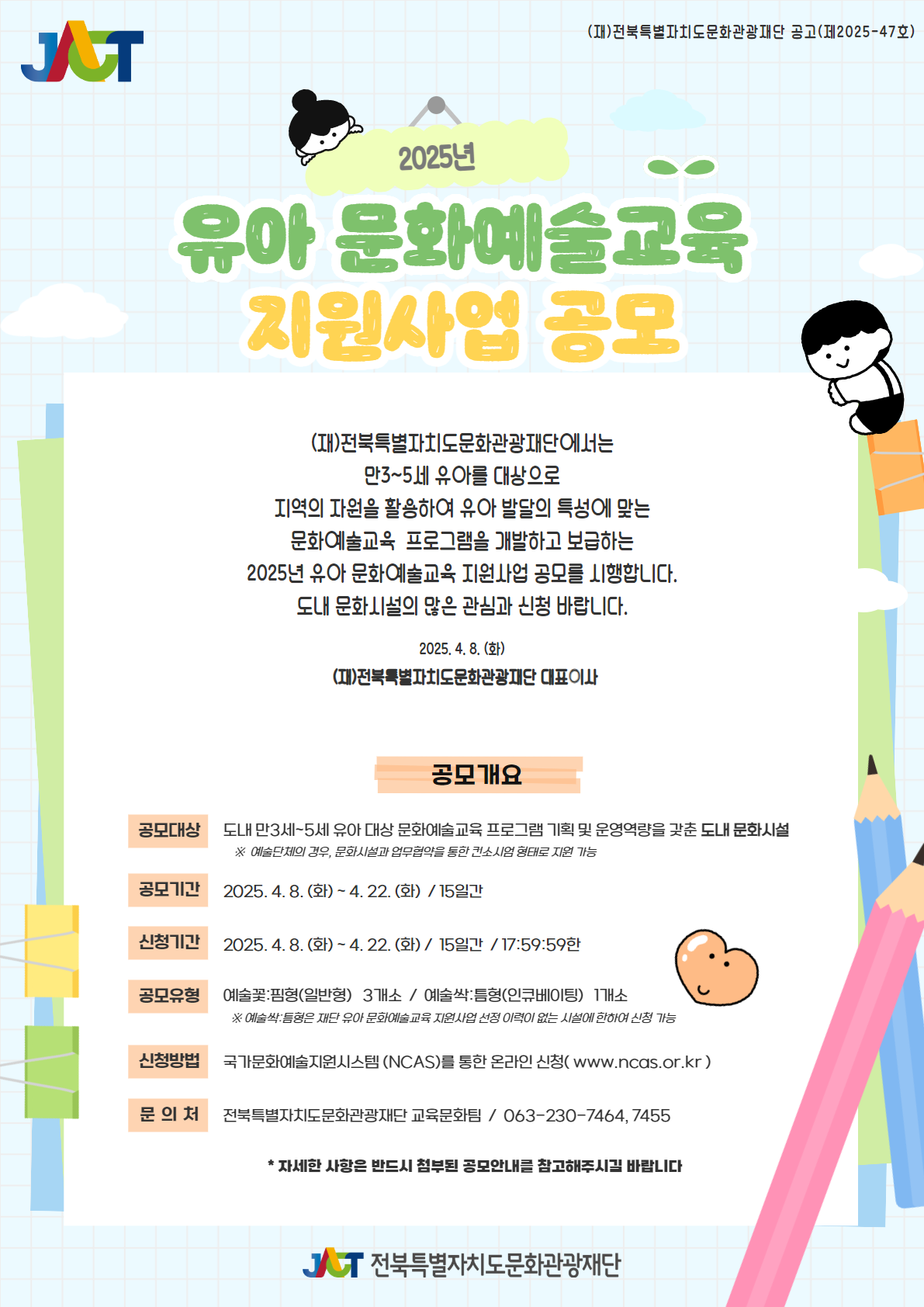 2025년 유아 문화예술교육 지원사업 공모 공고